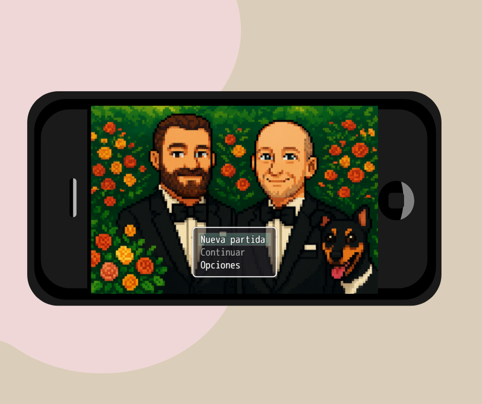 ESP - GamWed es una invitación de boda digital diseñada como un videojuego personalizado.